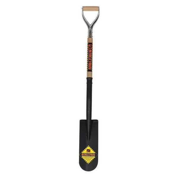 Drain Spade Shovel, 14 ga Steel Blade, Forward Turn Step, 30 in L Natural Hardwood Handle