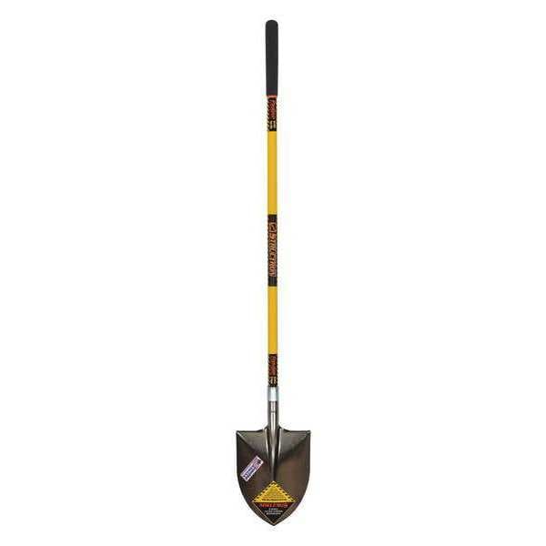 Irrigation Shovel, 14 ga Steel Blade, Front Turn Step, 48 in L Yellow Premium Fiberglass Handle