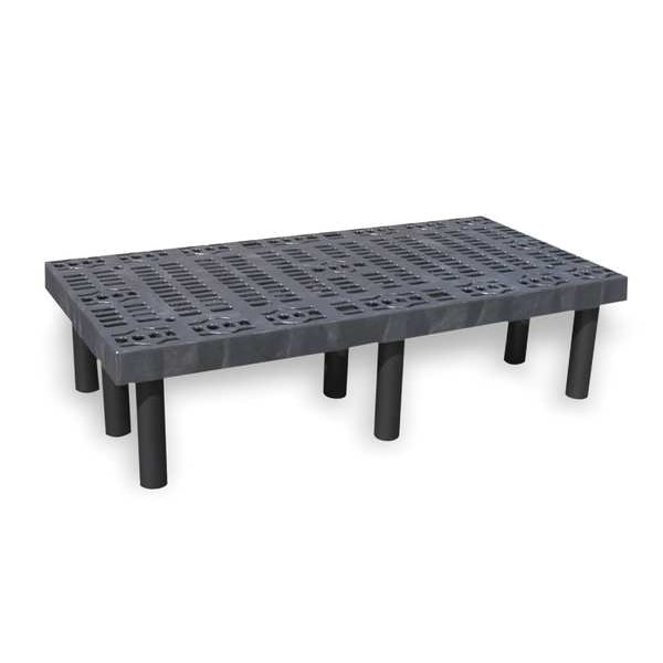 Dunnage Rack, Black, Finish Flat, Load Capacity 700 lb, Overall Depth 48 in, Overall Height 12 in, Overall Width 24 in, Polyethylene, Method of Construction Snap-Together, Rack Top Style Grid, Assembled Assembled, Includes Shelf, Number of Posts 9