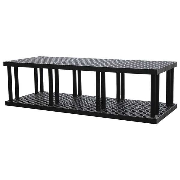 Plastic Shelving, Assembled Unassembled, Adjustability Fixed, Color Black, Frame Material Plastic, Finish Unfinished, Overall Depth 36 in, Overall Height 27 in, Overall Width 96 in, Shelf Style Ventilated, Shelving Material High Density Polyethylene, Commercial Shelving Strength Rating, Whole Unit Load Capacity 1,005 lb, Number of Shelves 2, Load Capacity per Shelf 1,005 lb, Includes (16) Leg Connectors, (16) Posts, Corrosion-Resistant Resistance Properties