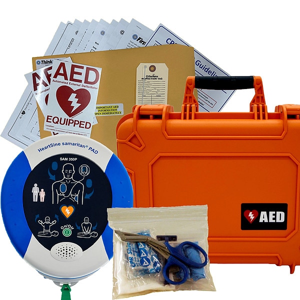 HeartSine samaritan Semi-Auto 350P Semi-Auto AED Package includes: AED in Rugged Carrying Case, Responder Kit, Adult Pad-Pak, Medical Oversight & First Voice Admin Tool Kit.