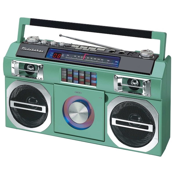 80's Retro Street Bluetooth Boombox with FM Radio, CD Player, 10W RMS Power. Teal