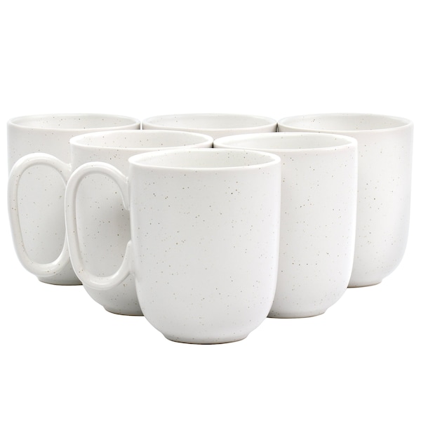 Mio 6 Piece 15 Ounce Round Stoneware Mug Set in Sea Salt White