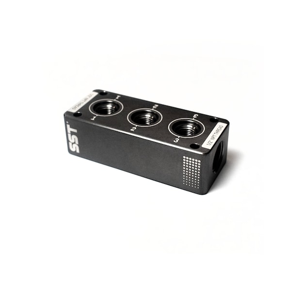 A high quality, multi-port air manifold - 6061 Aluminum Construction- Laser Etching Position Indicators- 4x Mounting Holes- NPT Inlet- NPT Outlets