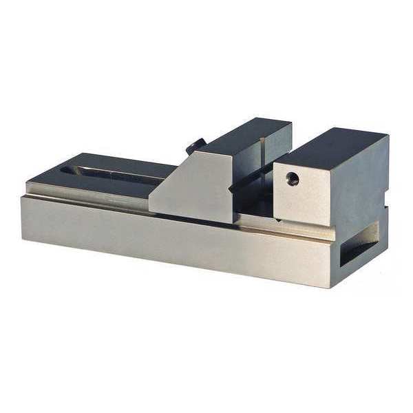 Machine Vise, Precision, Jaw Width (In.) 3 in, Jaw Opening (In.) 4 3/4 in, Throat Depth (In.) 1 5/16 in, Overall Length (In.) 7-1/2, Overall Height (In.) 2-5/8, Angled Center Channel provides extra Jaw Capacity, Eliminating Tilting and Lifting, High Precision, Jaw can be Opened and Closed without Unbolting Vise from Work Surface, Movable Jaw Pulls into Base at 45 Degrees to 60 Degrees for Maximum Holding Power and Hold Down Force