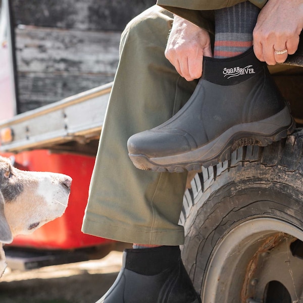 Men's Sugar River Ankle Rubber Boots, Plain Toe, Black, 10