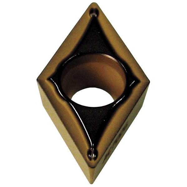 Diamond Turning Insert, Chip-Breaker Code ESU, Inscribed Circle 3/8 in, Al203+TiCN, ANSI Code DCMT32.52ESU, Chip-Breaker Style Single, Clearance Angle 7 Degrees , Coating Process CVD
