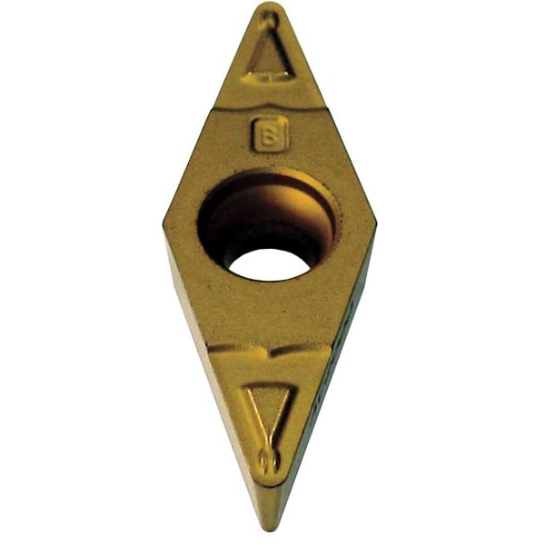 Diamond Turning Insert, Chip-Breaker Code ESU, Inscribed Circle 3/8 in, Al203+TiCN, ANSI Code VBMT332ESU, Chip-Breaker Style Single, Clearance Angle 5 Degrees , Coating Process CVD