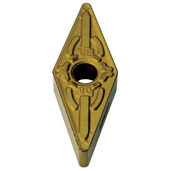 Diamond Turning Insert, Chip-Breaker Code EGE, Inscribed Circle 3/8 in, Al203+TiCN, ANSI Code VNMG332EGE, Chip-Breaker Style Double, Clearance Angle 0 Degrees , Coating Process CVD
