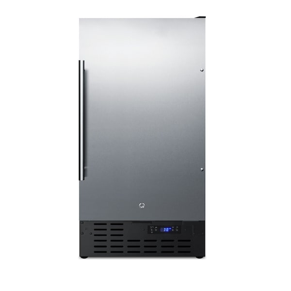 SUMMIT's selection of built-in undercounter refrigeration includes one of the industry's only complete 18in wide lines for use in ADA compliant settings. Sized just under 18in wide and 32in high, the FF1843BCSSADA is the perfect all-refrigerator for space-challenged kitchens. It comes with a fully wrapped stainless steel exterior and pro style handle. This unit can be used built-in or freestanding. The user-reversible door includes a factory installed front lock. Inside, the FF1843BCSSADA utilizes automatic defrost operation for low maintenance use. Four adjustable chrome shelves accommodate a variety of sizes and LED lighting offers an efficient interior view. This unit includes a digital thermostat for optimum temperature management. Combine the FF1843BCSSADA with its matching freezer, wine cellar, or beverage refrigerator. We also offer this model in black or with a panel-ready door.