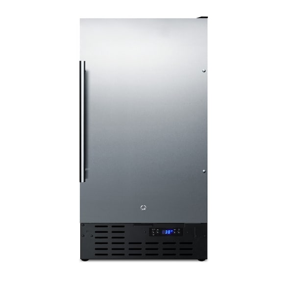 SUMMIT's selection of built-in undercounter refrigeration includes one of the industry's only complete 18in wide lines for the home. Sized just under 18in wide, the FF1843BSS is the perfect all-refrigerator for space-challenged kitchens. It comes with a black cabinet and stainless steel wrapped door with a pro style handle. This unit can be used built-in or freestanding. The user-reversible door includes a factory installed front lock. Inside, the FF1843BSS utilizes automatic defrost operation for low maintenance use. Four adjustable chrome shelves accommodate a variety of sizes and LED lighting offers an efficient interior view. This unit includes a digital thermostat for optimum temperature management. Combine the FF1843BSS with its matching freezer, wine cellar, or beverage refrigerator. We also offer this model in black or with a panel-ready door. For a 32in high ADA compliant version, see the FF1843BSSADA.