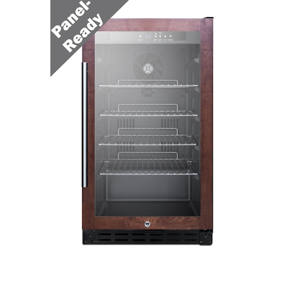 SUMMIT's selection of built-in undercounter beverage coolers combines user-friendly convenience with elegant style for an ideal fit in any setting. The SCR1841BPNRADA is an 18in wide all-refrigerator designed for use in residential settings. At 32in high, this unit is designed to fit under lower ADA compliant counters. The front-breathing system allows built-in installation, while the fully finished black cabinet also allows freestanding use. The glass door features a panel-ready stainless steel door trim that lets you customize the look to best match adjacent cabinetry panel dimensions: 27-5/8in H x 17-3/8in W at 3/4in minimum thickness. NOTE: this unit ships with a right hand door swing. For a left hand version, add option LHD. Users provide their own handle. Items can be stored on four adjustable chromes shelves in the auto defrost interior, with attractive LED lighting providing an elegant display. The digital thermostat offers intuitive temperature management. The SCR1841BPNRADA can be paired with our matching wine cellar, see the SWC1840BPNRADA. For this unit in a counter height, see the SCR1841BPNR. Note: Panel is not included. The images provided are meant only to be suggestive of what the product with a wood panel installed could look like. Users must supply their own wood panel.