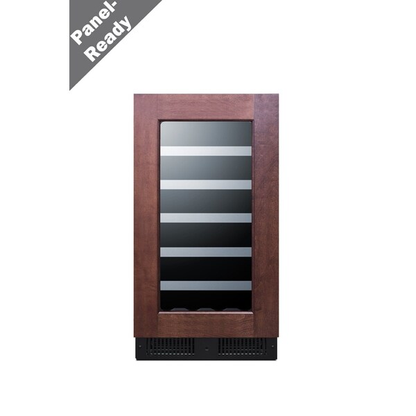Summit manufactures deluxe undercounter appliances designed to bring modern luxury into the home. The CL18WCPNR is an 18in wide single zone wine cellar. The front breathing design allows built-in installation under counters, while the fully finished cabinet in a jet black finish also enables freestanding use. This unit includes a fully articulating European-style hinge and 2-piece bracket kit that lets you easily install overlay panels over the door trim to create a custom look. Inside, white LED lighting located on the side walls complements the black interior to provide an attractive presentation of your stored collection. A lock is located in the kickplate for convenient security. The CL18WCPNR can store up to 29 Bordeaux or Burgundy style bottles. The black wooden shelves feature stainless steel trim. The interior control panel includes a digital thermostat for easy and intuitive operation, with a readout viewable in Celsius or Fahrenheit. Additional features include a user-reversible door, right angle plug for added space savings, sealed back design for easier cleanup, and a Sabbath mode setting. A built-in alarm audibly warns if the door is left ajar or if the unit exceeds recommended temperature, offering added protection for your wine storage. Uniquely styled and fully featured, the CL18WCPNR brings true luxury to small kitchen and wet bar spaces. For a matching beverage center, see model CL181WBVPNR.