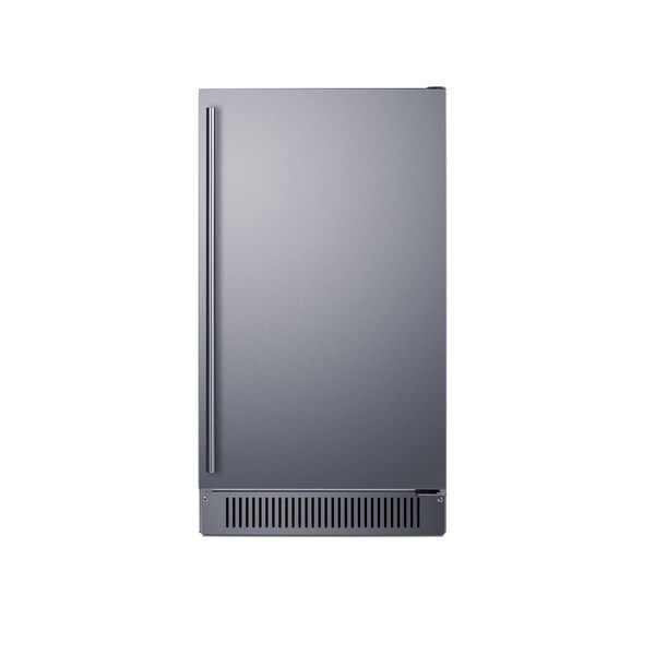 Summit brings proper convenience and streamlined luxury under the counter with built-in clear icemakers sized for 18 inch wide spaces. Sized just under 18 inches wide and 32.5 inches high, model BIM182ADA features a front-breathing design for built-in installation underneath ADA-compliant counters. The height can also be raised up to 34.75 inches to accommodate more standard counters. We include a stainless steel kickplate extender to fill the gap. This model comes in a complete stainless steel exterior, with a user-reversible door to best suit your setting. A pro style handle is included. This unit features a sealed back and right angle cord for added space savings. Inside, the BIM182ADA can produce 60 lbs. of clear ice cubes ice daily. The intuitive control panel ensures ease of use. An indicator light alerts users to each step in the production process and when the bin is full. The interior features UV lighting for easy visibility and added protection against bacteria. The automatic defrost system minimizes user maintenance. This model has an internal pump and ships with the drain hose, water hose, a removable ice bucket, and ice scoop. The interior wall includes a hook to hang the scoop for added convenience. With its unique size, user-friendly design, and large capacity, the BIM182ADA is a great fit for various kitchen setups. For a weatherproof outdoor version, see model BIM182OSADA. For a panel-ready version, see model BIM182ADAIF. In addition to this icemaker, Summit manufactures drain-free choices, as well as traditional 15 inch wide icemakers and a full assortment of matching 18 inch wide refrigerators, beverage centers, and wine cellars. Browse the complete lineup to complete any residential or commercial undercounter space.