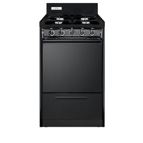 Summit Appliance offers a wide selection of American-made household ranges built for long-lasting durability in space-challenged kitchens. The TNM1107C is an apartment-sized gas range sized at just 20in wide, with a generous 2.46 cu.ft oven interior that can accommodate large trays. Two adjustable oven racks are included. The broiler is located below the oven in a drop-down compartment. Four open 9000 BTU gas burners accommodate most of your stovetop heating needs, with upfront push-to-turn knobs that let you adjust your cooking without reaching over hot burners. This unit utilizes an electronic ignition system for added safety. The TNM1107C comes in a jet black finish to suit any kitchen setting. This unit has a recessed oven door and is conveniently sized at just 24in deep for a better fit in galley in L-shaped kitchens, where every inch counts. Constructed from porcelain and steel, the TNM1107C offers lasting durability. We include an anti-tip bracket for added safety. With its classic style and quality construction, Summit's made in the USA cooking line offers reliable cooking for smaller homes. Additional choices are available in 24in, 30in, and 36in wide fits. This unit ships ready for natural gas connections. To use with propane, add the Kit LP.