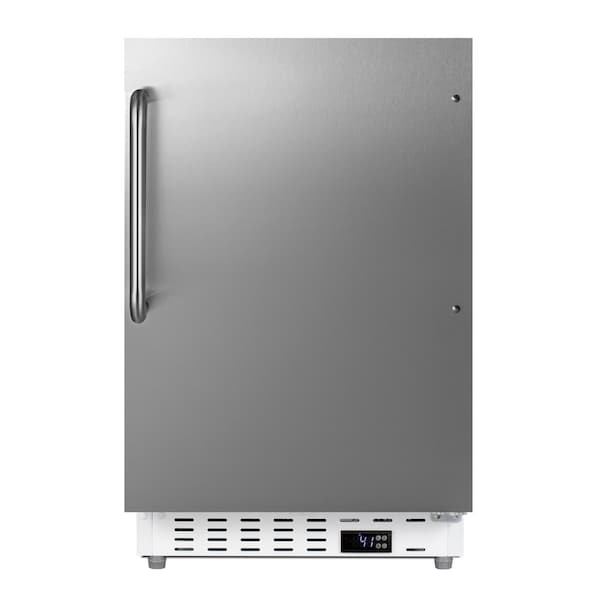 Summit Appliance offers a quality selection of 21in wide built-in undercounter all-refrigerators designed for installation under lower ADA compliant counters, with advanced features for user convenience. The ALR46WCSS is sized at 32in high to fit under lower counters complying with ADA guidelines for accessibility. The fully finished stainless steel cabinet allows freestanding use, while the front-breathing system means this unit can be built-in with minimum clearance.