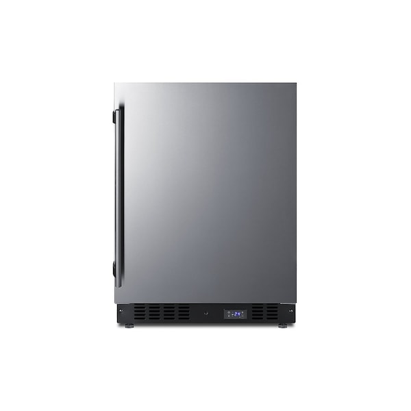 SUMMIT's SCFF53B Series brings quality and convenience under the counter with a fully featured lineup of built-in frost-free all-freezers. Sized with a convenient 24in footprint, the SCFF53BCSS freezer can be used built-in or freestanding. It has a stainless steel wrapped cabinet and sealed back for easy cleaning. The reversible stainless steel door includes a factory installed lock and a professional style handle. Inside, the SCFF53BCSS utilizes frost-free operation with fan-forced cooling to ensure low maintenance and even temperature distribution. Recessed LED lighting offers an attractive yet efficient look. The digital thermostat makes it easy to manage the interior temperature. This unit includes adjustable chrome shelves for flexible storage. Additional features include an open door alarm, high temperature alarm, and Sabbath mode setting that lets you disable some of the electrical elements during periods of observance. The SCFF53BCSS freezer is ETL-S listed to NSF-7 commercial standards. With its deluxe style and user-friendly features, this unit is the perfect choice for home or commercial kitchens. For a matching frost-free all-refrigerator, see the FF64BCSS.
