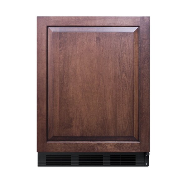 Accucold by Summit Appliance offers a wide range of all-refrigerators for general purpose storage. The commercially listed FF7BIADA Series features 24in wide all-refrigerators designed for use under lower ADA compliant counters. The FF7BKIFADA is a 32in high all-refrigerator with a full 5.5 cu.ft. capacity inside a slim 24in footprint. This model has a black cabinet. The door includes an integrated stainless steel frame to accept overlay panels for a custom look. Users provide their own handle. Inside, the FF7BKIFADA utilizes low maintenance automatic defrost operation. Our unique inhiddenin evaporator is set behind the rear wall to create a seamless, easy-to-clean interior that also maximizes shelf space. This unit has a flat door liner that allows it to accept larger trays up to 19-1/2in x 16in. Adjustable glass shelves allow users to reconfigure the interior to accommodate a variety of sizes. The interior light is controlled by an on/off rocker switch located behind the thermostat dial. The FF7BKIFADA is ETL-S listed to NSF-7 standards for use in commercial establishments. For more finish options, browse the full FF7BKADA series.