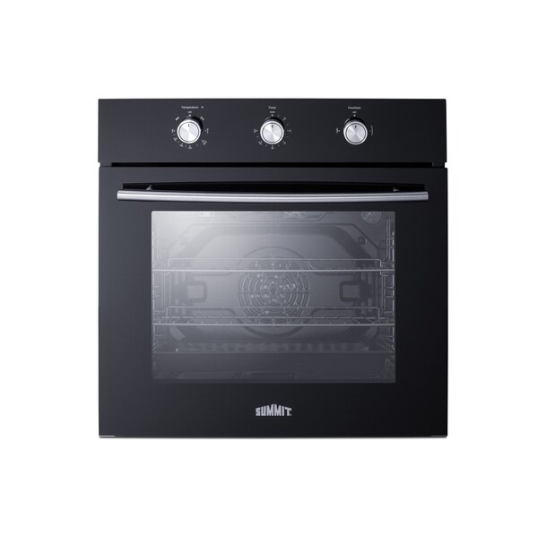 Summit's cooking solutions include 24in wide gas wall ovens specially sized to fit standard 23.23in H x 23.62in W cutouts perfect for kitchens with limited space. The SGW242BKLP is a single gas wall oven with a modern jet black glass door and a professional handle brushed in stainless steel. Three heavy-duty push-to-turn in a steel finish provide a simple and intuitive cooking experience with clear markings for each function. The oven door includes a large window and interior light function to illuminate the interior, making it easy to monitor cooking without opening the door. The door can be removed for easier cleaning or service as needed. Please consult the manual for instructions. Inside, this wall oven has 2.3 cu.ft of interior space and features enamel construction for lasting durability and easier user maintenance. Two adjustable wire racks have five shelf positions to accommodate various cookware sizes. We also include a full-sized baking tray for cooking convenience. The SGW242BKLP offers a range of heating functions to cover virtually all of your cooking needs, including baking, broiling, and convection settings. This unit has a hidden bottom heating element for even baking. The oven base is removable to allow for easy cleanup. This wall oven is powered by electronic spark ignition and ships with a pre-installed 115V 3-prong cord. The SGW242BKLP is designed for use with an LP gas connection. For this unit with a natural gas connection, see model SGW241BK. The SGW242BKLP can be paired with one of our many LP gas cooktops to meet all of your cooking needs in apartments, mobile homes, tiny homes, cabins, and other settings. In addition to our innovative gas wall ovens and cooktops, Summit manufactures full gas ranges, electric wall ovens, induction cooktops, and microwaves. Explore Summit's complete collection for more options at summitappliance.com.