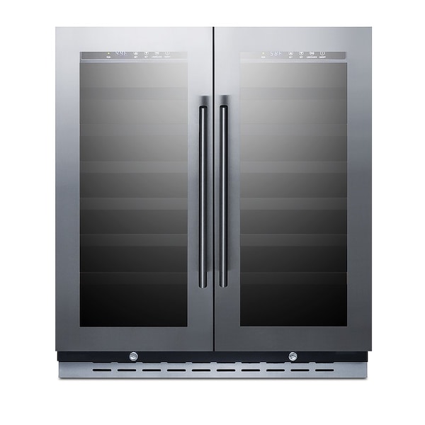 The SWC3066B is a 30" wide wine cellar designed for built-in installation under counters. The fully finished black cabinet also allows freestanding use. This unit includes two seamless stainless steel trimmed glass doors with a unique French door swing. Both include factory installed locks and professional handles.