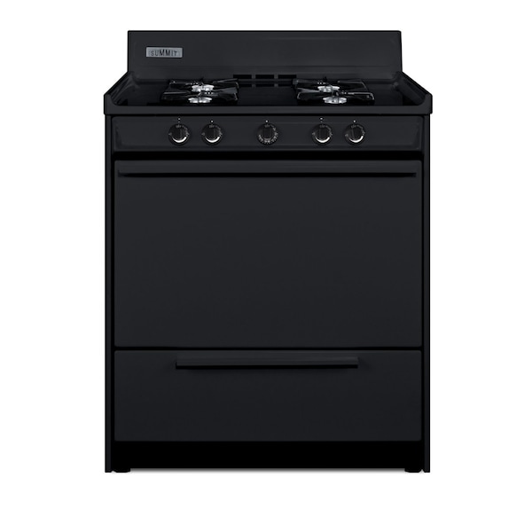 Summit Appliance offers a wide selection of American-made household ranges built for long-lasting durability in space-challenged kitchens. The TNM2107C is a gas range sized at 30in wide, with a generous 3.7 cu.ft oven interior that can accommodate large trays. Two adjustable oven racks are included. The broiler is located below the oven in a drop-down compartment. Four open 9000 BTU gas burners accommodate most of your stovetop heating needs, with upfront push-to-turn knobs that let you adjust your cooking without reaching over hot burners. This unit utilizes an electronic ignition system for added safety. The TNM2107C comes in a jet black finish to suit any kitchen setting. This unit has a recessed oven door and is conveniently sized at just 24in deep for a better fit in galley in L-shaped kitchens, where every inch counts. Constructed from porcelain and steel, the TNM2107C offers lasting durability. We include an anti-tip bracket for added safety. With its classic style and quality construction, Summit's made in the USA cooking line offers reliable cooking for smaller homes. Additional choices are available in 20in, 24in, and 36in wide fits. This unit ships ready for natural gas connections. To use with propane, add the Kit LP.