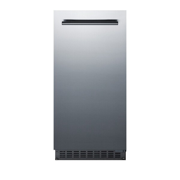 Summit's commercially listed BIM68OS series icemakers are an attractive and durable solution to keeping a continuous supply of clear ice on hand in virtually any indoor or outdoor location. Sized at 15in wide, the BIM68OSGDR features a complete 304 grade stainless steel exterior specially built to hold up to the elements. The user-reversible door is designed with a powerful magnetic gasket to ensure proper insulation, with a stainless steel handle mounted horizontally for a modern look. The front-breathing design allows built-in installation under counters, while the fully finished stainless steel cabinet also allows freestanding use, with a sealed back for added outdoor protection and easier cleanup. This model utilizes a gravity drain system. The BIM68OSGDR produces clear gourmet dice-style ice cubes, perfect for keeping any beverage cold without diluting the flavor. Under standard operating conditions, this unit can make up to 62 lbs. in a day cycle, while the storage bin can hold up to 26 lbs at a time. We include an ice scoop that can be hung inside for easy use. Frost-free operation eliminates the need to defrost the interior. Designed and manufactured for us in South Korea, the BIM68OSGDR is ETL-S listed to NSF-12 commercial standards for use in foodservice settings. The weatherproof constructed allows outdoor use, but this model can also be installed indoors in any kitchen or wet bar. A panel-ready version BIM68OSGDRIF will be available later this year. NOTE: This unit requires professional installation. Drain hose and other connection equipment is not included.