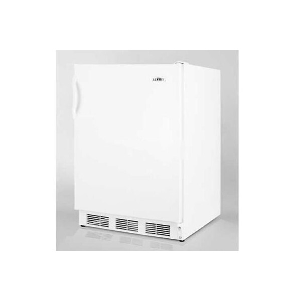 Summit freestanding all-refrigerator w/automatic defrost, 32"h for ada counters summit's ff7ada series features commercially approved all-refrigerators with ideal dimensions that offer maximum storage capacity in a slim fit. The freestanding ff7ada is just under 24 inches wide to fit tight spaces. It has a 32 inch height to meet ada guidelines for lower counter height with a classic white cabinet and door finish. Inside, the ff7ada uses automatic defrost to lower user maintenance. Summit's unique "hidden" evaporator is set behind the rear wall, creating a seamless interior that's easy to clean. The generous storage capacity can accommodate large trays with dimensions of 19 1/2" x 16." adjustable shelves and a reversible door add flexibility. A rocker switch to turn the interior light on and off is located just behind the adjustable thermostat for additional convenience. User-friendly and energy efficient, the ff7ada fits well in any commercial, home, or medical setting. Match it with any frost-free scff55al freezer for a complete side-by-side set.