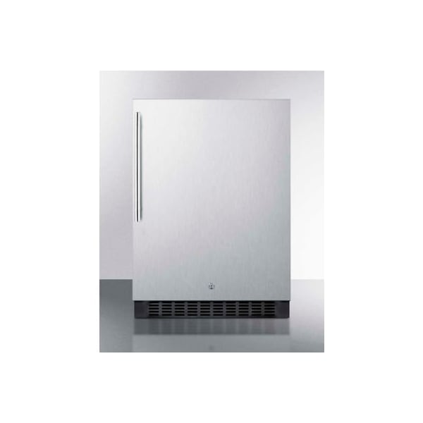 Summit spr627oscsshv - outdoor all-refrigerator for built-in use w/lock, stainless steel, 23-5/8"w summit's spr627os series features built-in all-refrigerators equipped with user-friendly features for convenient use in any outdoor kitchen. the spr627oscsshv is a 24" wide all-refrigerator that can be used built-in or freestanding in any outdoor or indoor location. The cabinet and door are fully wrapped in weatherproof stainless steel for lasting durability. Our thin stainless steel handle completes the look and a factory installed lock offers added security. inside, this frost-free refrigerator includes an internal fan for an evenly cooled interior and a recessed led light for an elegant yet energy efficient glow. The digital thermostat (located in the interior) allows you to adjust the temperature at the touch of a button. Adjustable glass shelves make it easy to organize the 4.6 cu.ft. Interior. The floor is specially slotted to hold bottles in place. with a stunning design and convenient features, summit spr627oscsshv is the ideal finish for any outdoor or indoor kitchen. This unit is etl-s listed to nsf-7 standards for use in commercial establishments. features: designed and constructed for use in the outdoors flexible design allows built-in or freestanding use in 24" wide spaces recessed led lighting offers attractive presentation of stored products factory installed lock provides security you can count on easy temperature management with a digital thermostat lock options: extra keys exterior options: left hand door swing top-mounted door latch