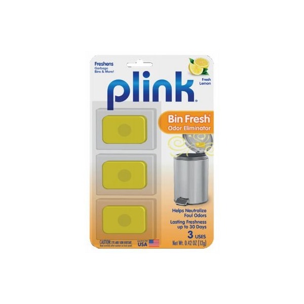 3 Count, Fresh Lemon Scented Bin Freshener Plink, Innovative Fragrance Technology Washes Away Foul Odors, Leaving Your Trash Room With Lasting Freshness, Removes Odor Causing Residue From The Hidden Parts Of The Trash, Quick Easy Way To Freshen Any Trash Bin