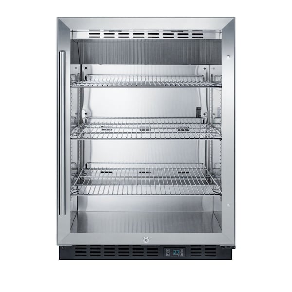 Inside, the SCR610BL utilizes low maintenance automatic defrost operation with an internal fan to ensure even temperature distribution. Recessed LED lighting offers the perfect display conditions inside the durable and easy-to-clean stainless steel interior. This unit includes three cantilevered chrome shelves to ensure flexible storage that accommodates any item size. High temperature and open door alarms offer added protection.