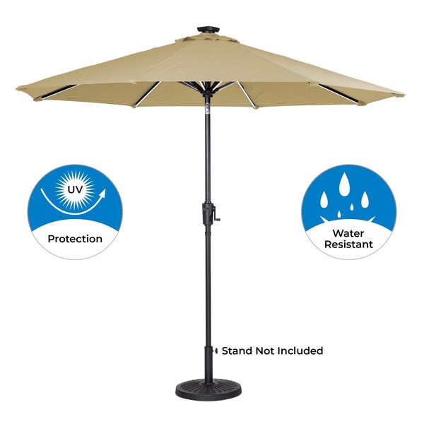 9Ft Round Next Gen Solar Lighted Umbrella, Aluminum, 8Rib, Taupe Olefin Fabric (Discontinued)
