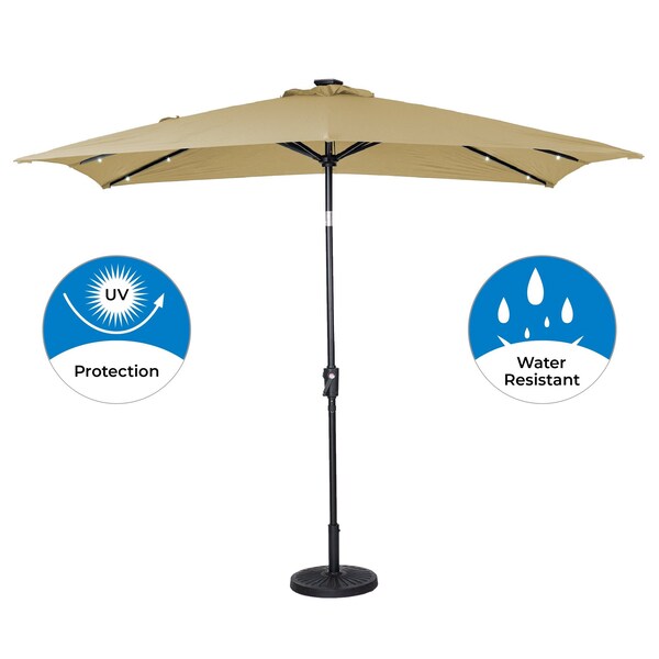 9Ftx7Ft Rectangular Solar Lighted Umbrella, Taupe, Olefin Fabric (Discontinued)