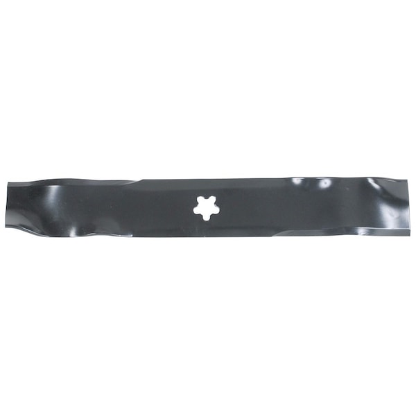 BLADE-MOWER, 15-1/2", 5PT, MULCH, Type: Medium Lift, Notes: (3) blades for 46" cut., Center Hole: 5 point star, Length: 15-1/2", Thickness: 0.156, Width: 2-1/4", Web Notes: Replacement Lawnmower Blade(XHT). XHT (Xtreme Hardness & Toughness) blades are 25-40% harder than, Web Notes: standard lawnmower blades. Benefits of the HXT blade are sharper and longer lasting cutting edges., Web Notes: More resistance to bending. Tighter tolerances in the aftermarket vs. OEM. XHT blades also offer, Web Notes: greater impact toughness.