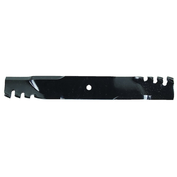 BLADE-MOWER, PRED, 18", 1/2", MULCH, Notes: (2) blades for 36" cut. (3) blades for 52" cut., Center Hole: 1/2", Length: 18", Thickness: 0.197, Width: 2-1/2", Type: Toothed, Web Notes: Predator blades offer superior mulching capabilities over traditional mulching blades. The airflow, Web Notes: tooth design increases blade strength while producing more airflow for smaller clippings. Predator, Web Notes: blades have all the same benefits as XHT (Xtreme Hardness & Toughness) blades.