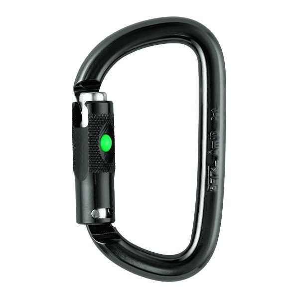 Carabiner, Climbing, Am'D, Petzl, ANSI: Yes, CE: Yes, Gate Opening: 15/16" (24 mm), Locking Mechanism: Ball, Major Axis: 6295 lbs (28 kN), Material: Aluminum, Minor Axis: 1574 lbs (7 kN), Open Gate: 1798 lbs (8 kN), Notes: This carabiner or attachment tool meets ANSI Z133.1 standards for climbing or life support. This, Notes: tool is also extremely useful for other tasks including light-duty rigging, tool attachment and, Notes: storage , line redirection, and many others.