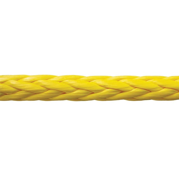 LINE, HMPE, 3/8"x600', Notes 2: 12-strand HMPE is extremely high strength, light weight, abrasion resistand, very low stretch, easy, Notes 2: to splice and flexible., Web Notes: Our 12-strand HMPE is an extremely high strength steel cable replacement made from UHMWPE, which has, Web Notes: very little stretch and is light weight and neutrally buoyant in water. It is lighter and safer to, Web Notes: handle with bare hands than steel cable., : 3.5 lbs, Construction: 12 Strand Hollow Braid, Core: HMPE, Diameter: 3/8" (9.53mm), Milks: No, Spliceable: Yes, Tensile: 19,500 lbs