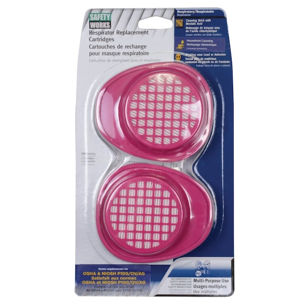 MULTI-PURPOSE RESPIRATOR REPL. CART., Notes 2: The cartridges are also NIOSH Approved against Chlorine, Hydrogen Chloride, Hydrogen Sulfide, and, Notes 2: Organic Vapors., Notes 3: The cartridges include integral high efficiency (99.97% against 0.3 micron particles) filters and an, Notes 3: impregnated bed of special activated carbon., Notes 5: These cartridges are only compatible with B100320 Facepieces. They are not certified with any other, Notes 5: facepiece., Notes 4: The cartridges are certified by NIOSH with P100/OV/CL/SD/HC approvals.
