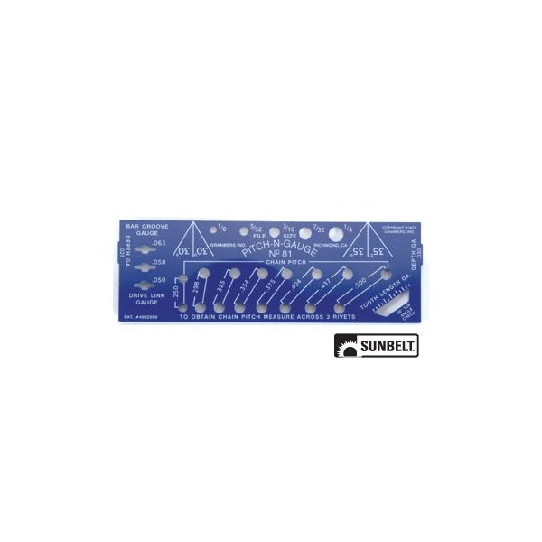 Pitch-N-Gauge, Notes 2: It also provides 30ø and 35ø cutter angles, .025 and .030 depth gauge measurements, and a 35ø top, Notes 2: angle check.