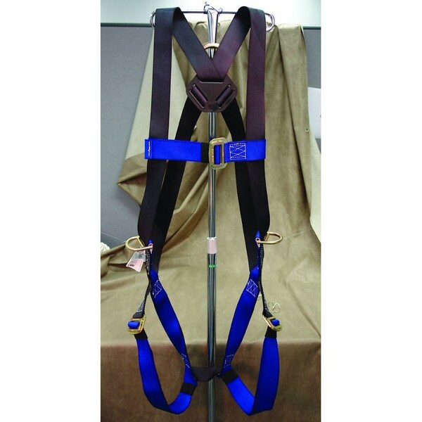 SADDLE-BODY HARNESS-CP+3 RING, Notes 2: They feature a sliding Dee ring in the center of the back, parachute mating buckles on the chest and, Notes 2: leg straps, and are made from polyester. Three ring harnesses have one additional dee on each hip.