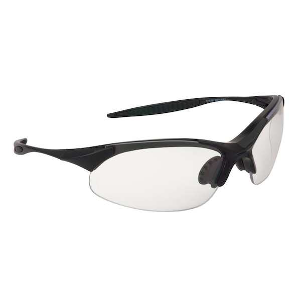 Safety Glasses, Cobra, Half Frame, Frame: Shiny Black, Lens: Clear, Notes: Comfort fit rubber nose piece with soft, non-slip rubber temple ends., Notes 2: Crafted of high-grade polycarbonate material.