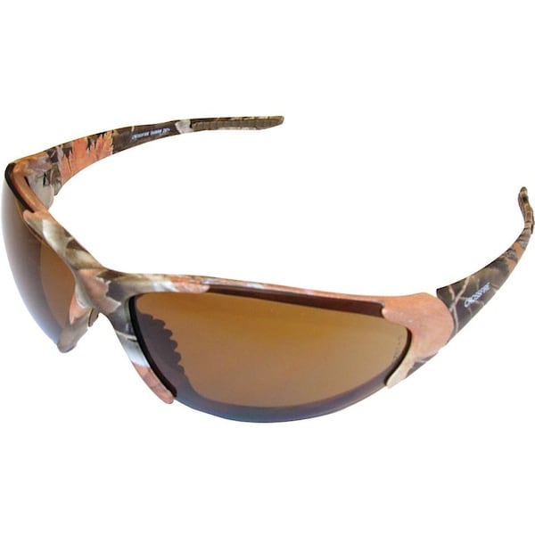 Safety Glasses, Core, 3/4 Frame, Frame: Woodland Brown Camo, Lens: HD Brown, Notes: Comfort fit rubber nose piece., Notes 2: Available with polarized lenses., Notes 3: TR-90 Ultraflex, ultra light frame technology.
