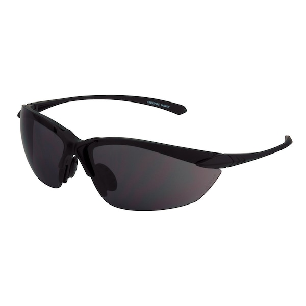 Safety Glasses, Sniper, Half Frame, Frame: Matte Black, Lens: Smoke, Notes: Comfort fit rubber nose piece and soft, non-slip rubber temple ends., Notes 2: Available with polarized lenses., Notes 3: TR-90 Ultraflex, ultra light frame technology.
