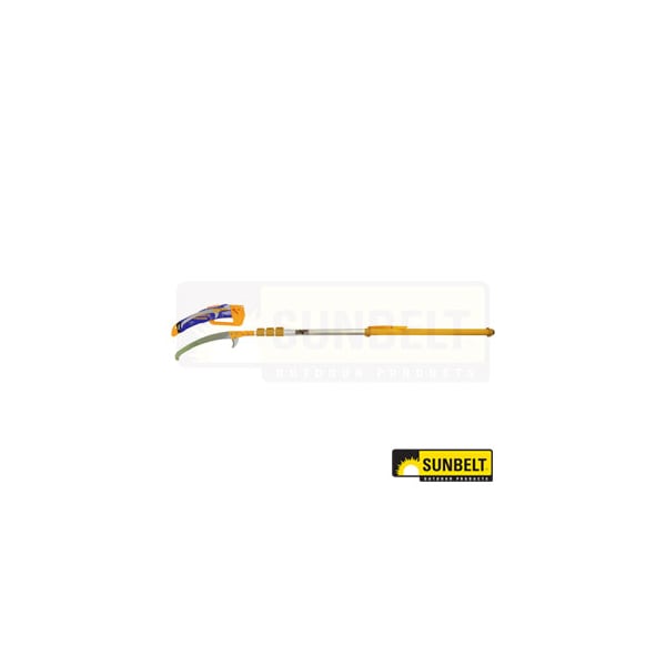 Saw Pruner Kit - Notch Nobasu - 4 Section Telescoping Aluminum 20', Type: Pole Saw, Notes 3: Product applications include pruning & trimming, arborist & forestry, lawn & garden, Teeth: 5.5 teeth per inch (6.5 teeth per 30 mm), Weight: 7.9 pounds (3,580 grams) operating weight; 8.65 pounds (3,920 grams) weight with blade cover, Dim A (1): [EXT LENGTH] 20', Dim B (2): [STORED LENGTH]94", Dim C (3): [SECTIONS] 4, Dim D (4): [BLADE LENGTH] 420 mm/16.5", Notes: Features Silky's aggressive yet smooth cutting blades with protective scabbards. Rigid aluminum, Notes: construction resists bending. Improved cam collar locks with rib lock protection. Abrasion, Notes: resistant, low profile grip for enhanced control and ergonomics during pruning. Quick connect saw, Notes: head - notools needed., Web Notes: The Silky Hayate is a state-of-the-art, heavy-duty, aluminum telescoping pole saw. Thick aluminum, Web Notes: alloy extension poles are oval shaped, providing precise control over the direction of the blade, Web Notes: thus reducing bending to the minimum. The base pole has a pole-end shock absorber and comfortable, Web Notes: rubberized overgrip. The Hayate is manufactured with high visibility colors and comes equipped with, Web Notes: a new advanced design sheath with a built-in carry handle., Notes 2: Product applications include pruning & trimming, arborist & forestry, lawn & garden, Blade: Hayate