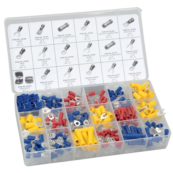 Solderless Terminal and Connector Assortment, 175 pieces, Notes: Contains 175 pieces