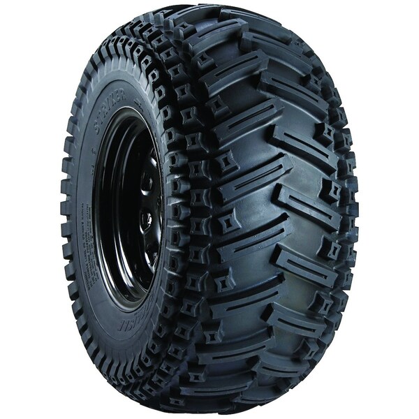 TIRE-STRYKER, AT22X11X9, BELTED, Dim A (1): 22.3, Includes: Tire only (does not include rim), Maximum Load: 340, Maximum PSI: 5, Mounted Diameter: 22.6, Mounted Width: 11.2, Ply: belted, Rim Width: 10, Tread Pattern: Stryker, Tread Style: ATV/UTV, Web Notes: This rugged Carlisle ATV/UTV tire is designed with durable rubber compounds and strong nylon cord, Web Notes: construction, offering the ultimate in cut and impact resistance.