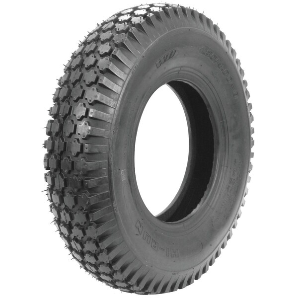 TIRE-STUD, 4.1X3.5X4, 2 PLY, Dimensions: 4.10/3.50 x 4, Includes: Tire only (does not include rim), Maximum Load: 260, Maximum PSI: 30, Mounted Diameter: 10.4, Mounted Width: 3.4, Ply: 2, Replaces: 5160251, Rim Width: 2.25, Tread Pattern: Knobby - K352, Tread Style: Stud, Web Notes: The Hi-Run SuTong tire's Diamond tread provides better two way traction while maintaining rugged, Web Notes: performance. Optimum for small lawn equipment. Suited for various applications including but not, : limited to hand trucks,