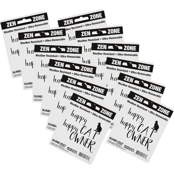 Decal Cat Happy Owner 2.75 in x 3.5 in, 12-Pack PK
