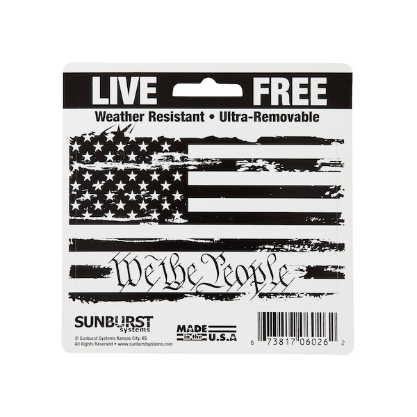 Decal Patriotic Distressed WTP 5 in x 5 in, White Vinyl