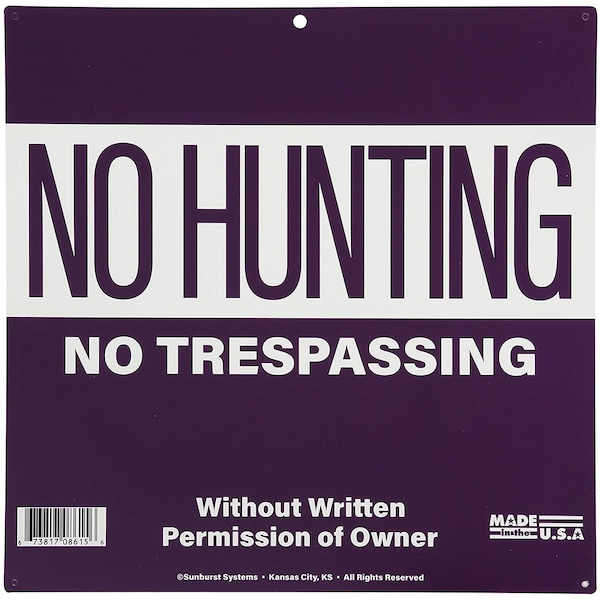 Sign No Hunting/Trespassing 12 in x 12 in Purple