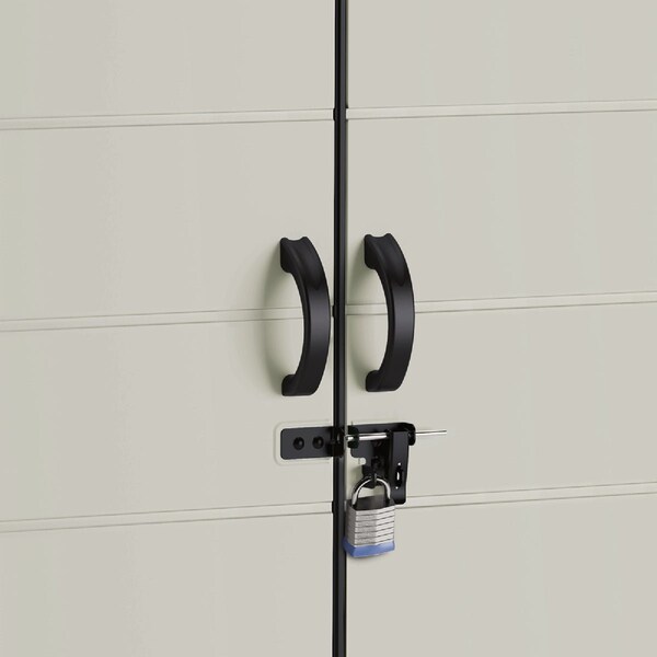 A combination of strength and storage the 6 Ft. x 5 Ft. Modernist Storage Shed by Suncast is the perfect fit for anyone looking to upgrade their storage capabilities. Featuring 200 Cu. Ft. of storage space this shed is ideal for storing all your outdoor equipment. A steel frame structure and multi-wall resin panels provide maximum strength and durability even under heavy roof snow loads. Sturdy double doors allow you to access your items easily and the doors are pad-lock ready for added security (lock not included). Large transom windows allow for natural light making it easy to find what you need. This shed is beautiful strong and built to withstand the elements all year long.